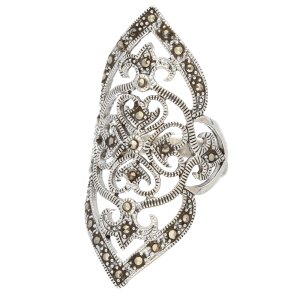 Modna bransoletka z delikatnymi markazytami co z pewnością dodaje jej niesamowitego uroku. Szerokość 18 mm. Biżuteria wykonana ze srebra próby 925.