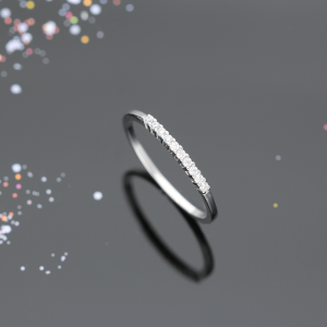 Delikatny, ażurowy, srebrny pierścionek wysadzany białymi cyrkoniami co z pewnością dodaje biżuterii niesamowitego uroku. Całość wykonana z rodowanego srebra próby 925. Szerokość pierścionka 9 mm.