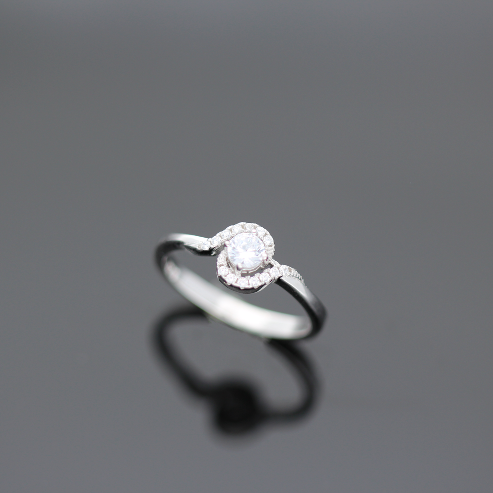 Wyjątkowy, srebrny pierścionek z przepięknie mieniącym się cyrkoniami co z pewnością dodaje biżuterii niesamowitego uroku. Całość wykonana z rodowanego srebra próby 925. Szerokość pierścionka 7 mm.