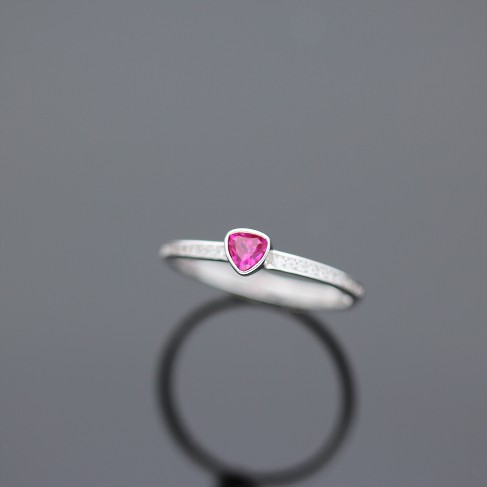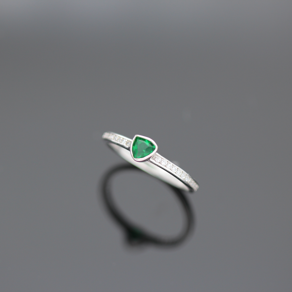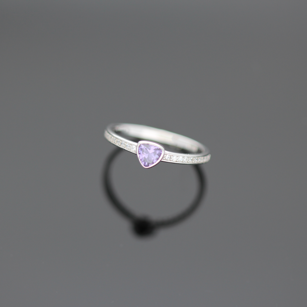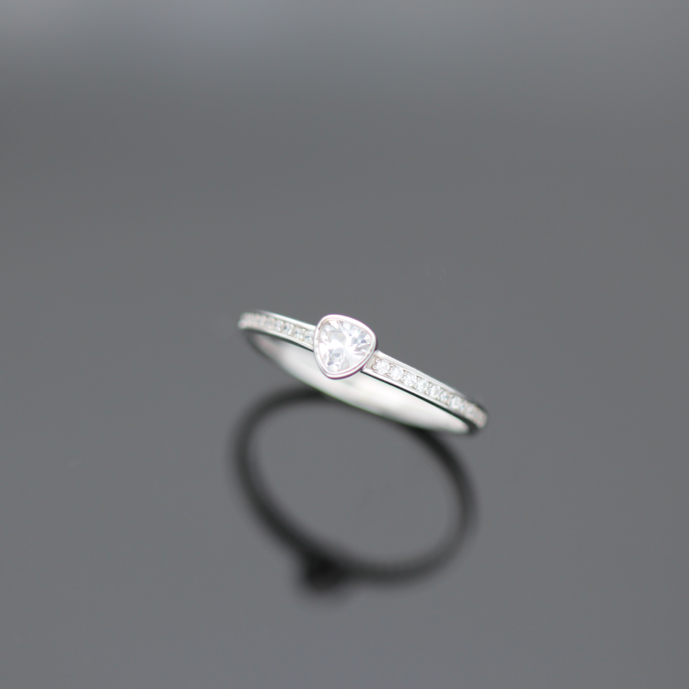 Delikatny  pierścionek, wysadzany pięknie mieniącymi się  cyrkoniami co z pewnością dodaje biżuterii niesamowitego uroku. Całość wykonana z rodowanego srebra próby 925 . Wielkość największej cyrkonii 4 mm. Szerokość obrączki 2 mm.