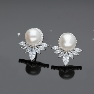 Wyjątkowy, srebrny pierścionek wysadzany pięknie mieniącymi się cyrkoniami oraz perłą hodowaną co z pewnością dodaje biżuterii niesamowitego uroku. Całość wykonana z rodowanego srebra próby 925. Wielkość perły 9 mm.