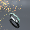 Wyjątkowy, srebrny pierścionek wysadzany pięknie mieniącymi się naturalnymi szmaragdami co z pewnością dodaje biżuterii niesamowitego uroku. Całość wykonana z rodowanego srebra próby 925. Szerokość obrączki 2 mm, wielkość kamienia 2 mm.