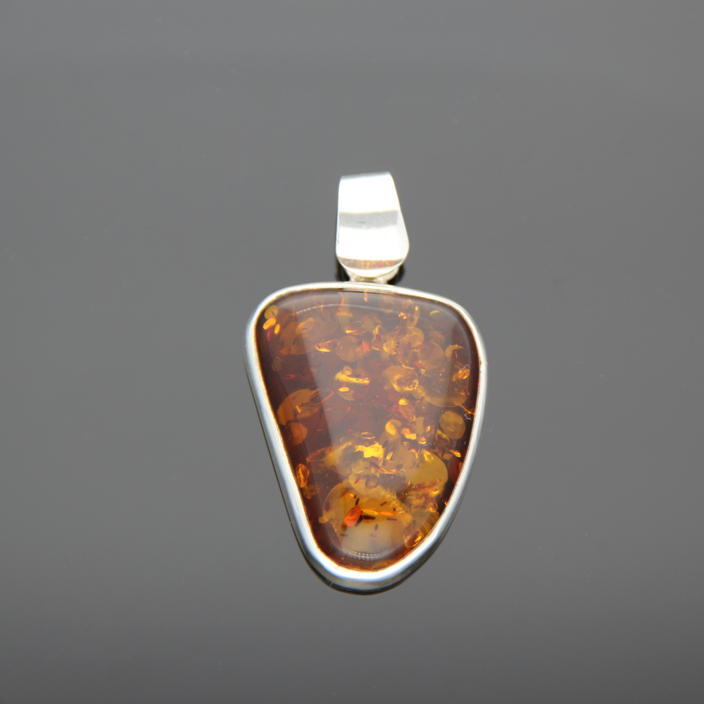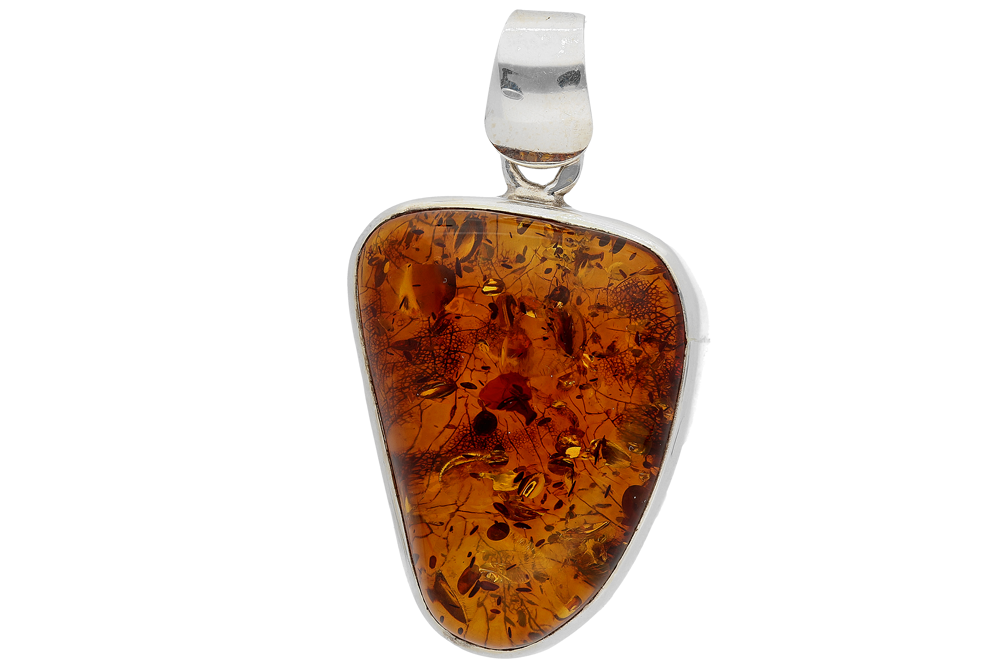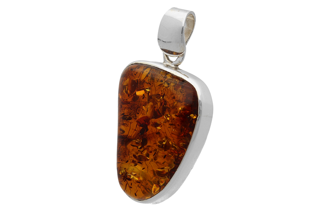 Zawieszka srebrna z przepięknym bursztynem zarówno do codziennej jak i wyjściowej stylizacji. Długość całej zawieszki około 45 mm. Wielkość kamienia 44 mm x 30 mm. Biżuteria wykonana ze srebra próby 925.
